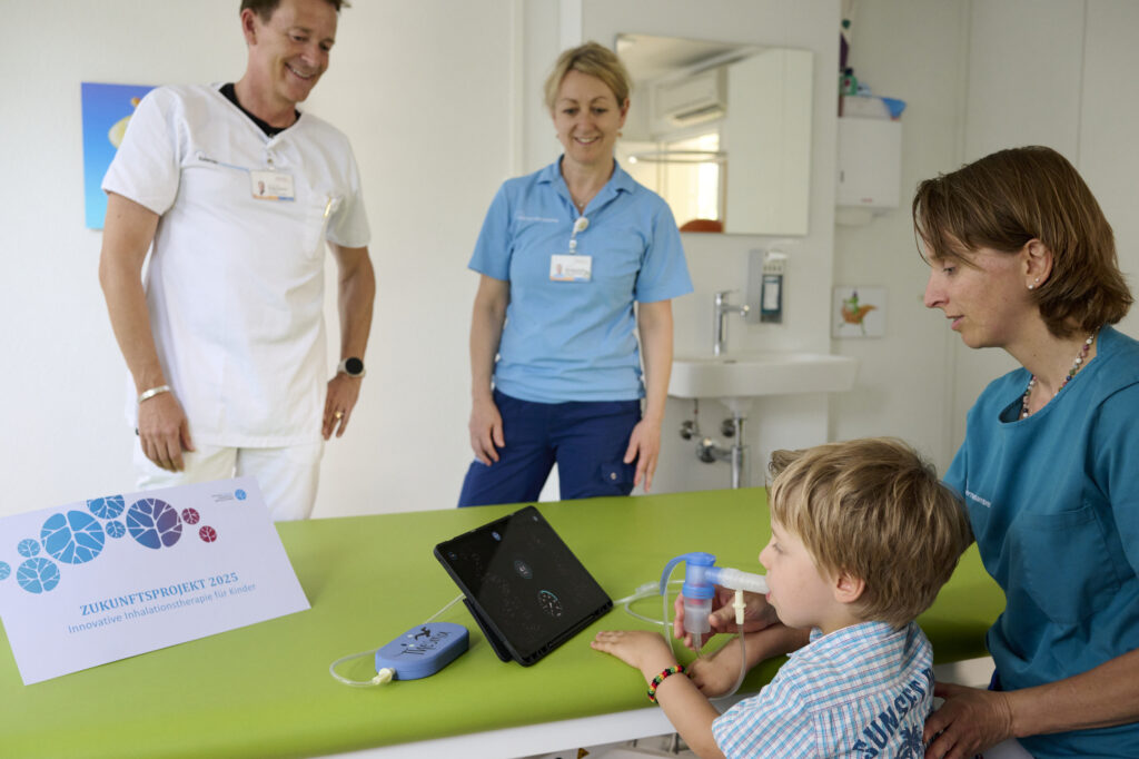 Ein digitales Spiel auf dem Tablet unterstützt Kinder mit Atemwegserkrankungen dabei, ihre Inhalation Schritt für Schritt korrekt und regelmässig durchzuführen – mit sichtbarem Feedback und spielerischer Motivation. So wird die Therapie verständlich, wirksam und alltagstauglich – und entlastet gleichzeitig Eltern wie Fachpersonen.